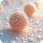 Porous, sponge-like particles that encapsulate actives and release them gradually over time, reducing irritation while providing controlled, long-lasting delivery on the skin’s surface.